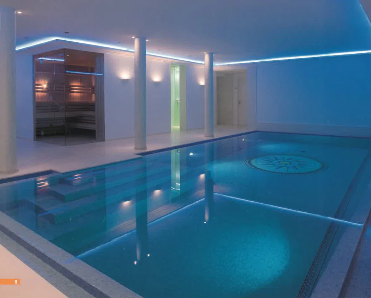 Ein Hallenbad steht für ganzjährigen Badespaß in exklusivem Ambiente. Wir entwickeln für Sie maßgeschneiderte Hallenbäder, die nicht nur höchsten Komfort und moderne Technik bieten, sondern sich auch stilvoll in Ihre Innenarchitektur einfügen. Durch intelligente Belüftungs-, Entfeuchtungs- und Beheizungssysteme schaffen wir ein angenehmes Raumklima – ideal für den privaten Wellnessbereich oder den professionellen Spa-Bereich in Hotels und Reha-Einrichtungen.